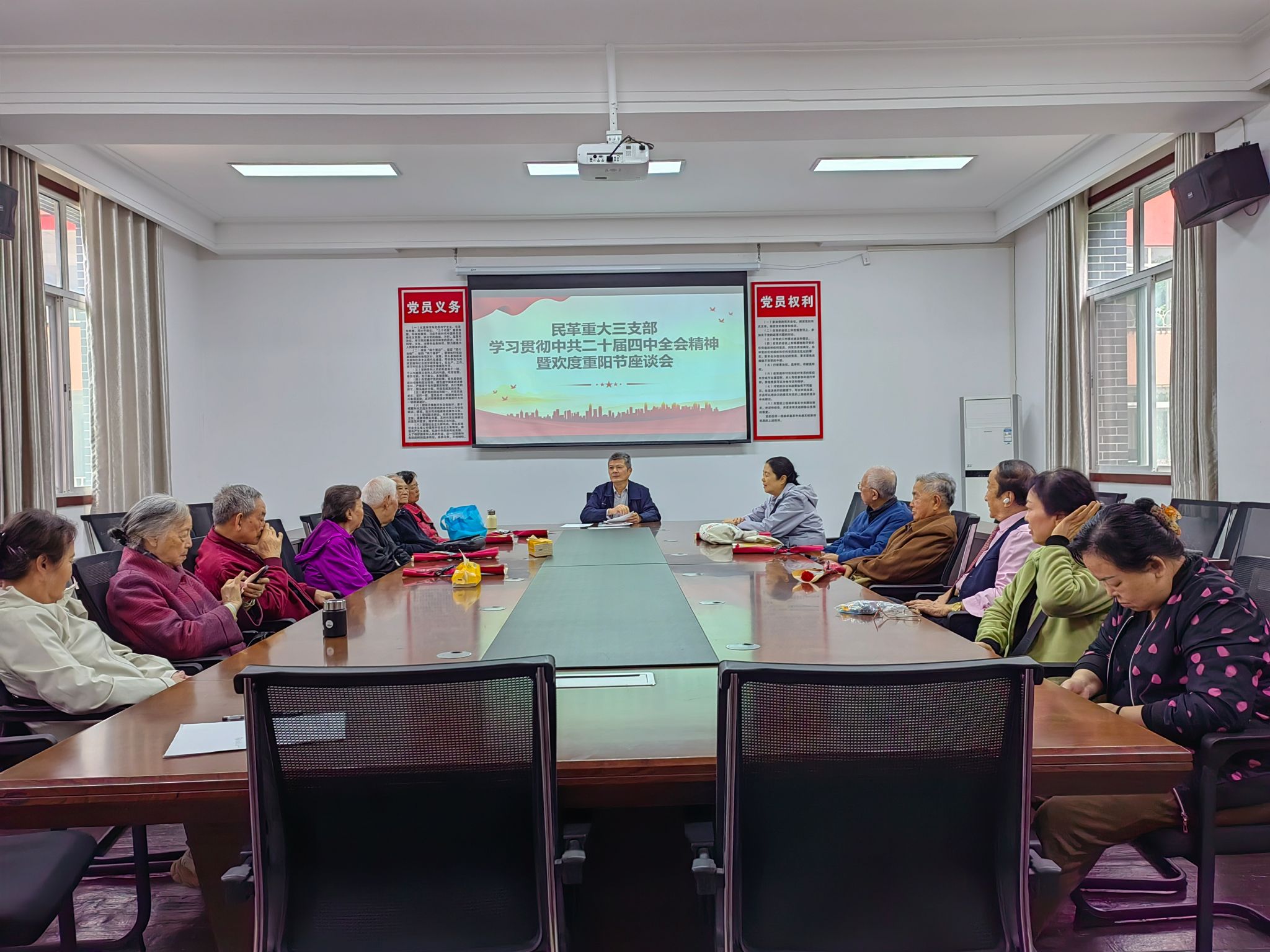 10月27日上午,民革重庆大学三支部在A区离退休处206会议室召开学习贯彻中共二十届四中全会精神暨欢度重阳节座谈会。15位党员参加会议,座谈会由副主委孙琦主持。